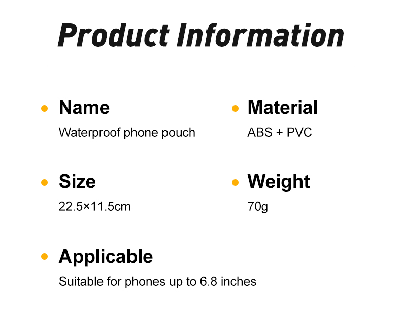 6. Ympäristöystävällinen PVC-materiaali saa sinut käyttämään 6,8 tuuman vedenpitävää puhelintaskua herkempiä.