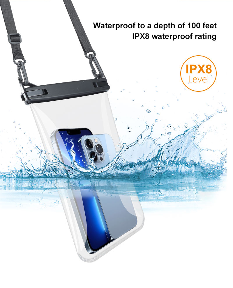 Certifié IPX8 jusqu'à 100 pieds, offre une résistance à l'eau / à la neige / à la saleté pour vos appareils pendant que vous nagez, faites du bateau, pêchez, patinez, etc.