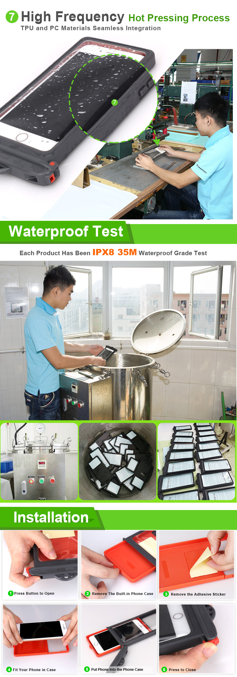 La tecnologia viene applicata al processo di fabbricazione dei prodotti. Caratterizzato da caratteristiche versatili e perfetta applicabilità, il nuovo stile impermeabile per la custodia del telefono cellulare Custodia impermeabile personalizzata per telefono cellulare La custodia per telefono impermeabile all'ingrosso può essere ampiamente vista nel campo (i) delle borse per telefoni cellulari& Casi.