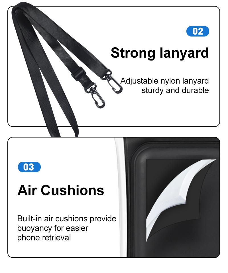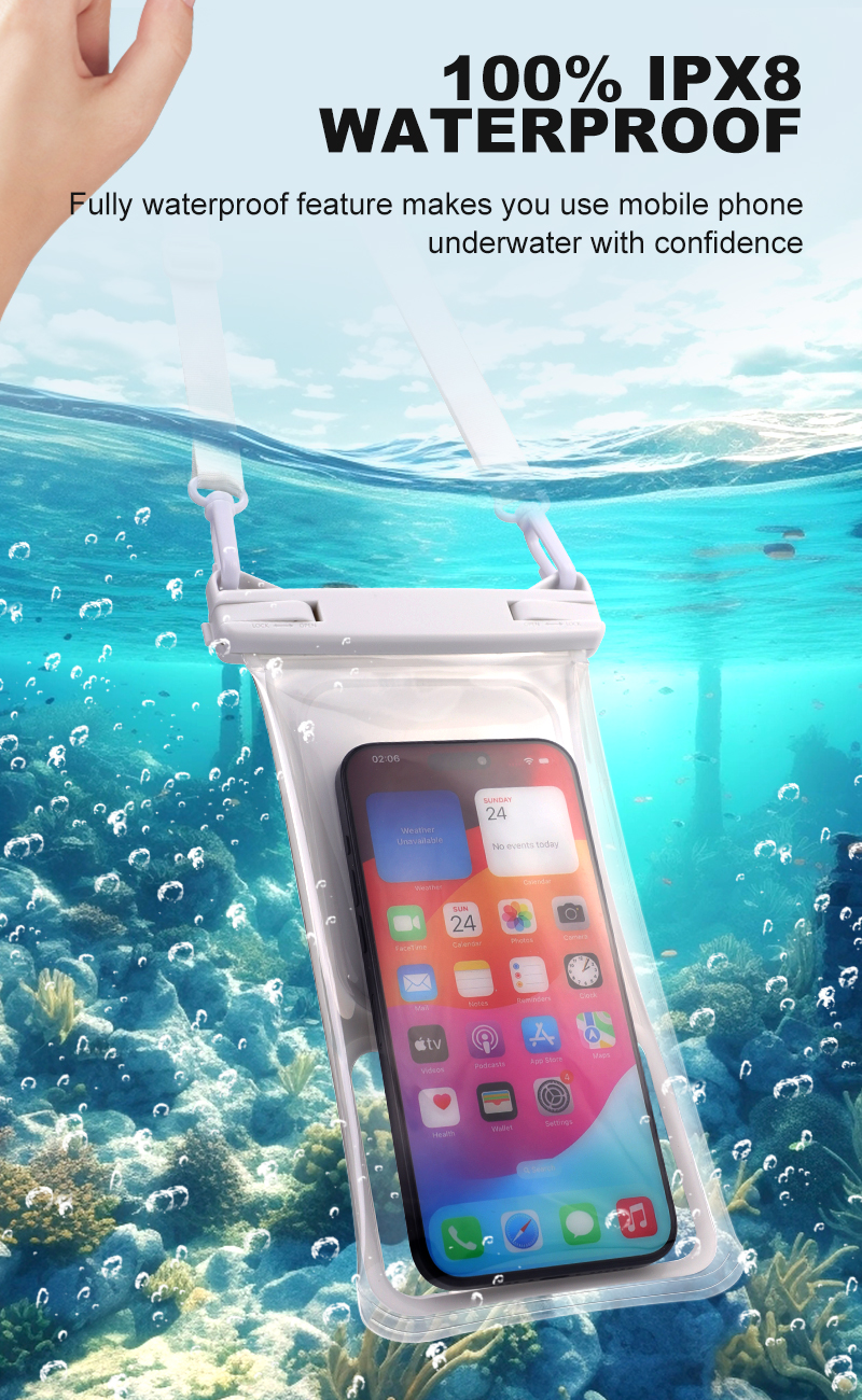 自信を持ってあらゆる要素を克服しましょう。IPX8 潜水基準 (最大 10 メートルで 2 時間防水) に基づいて設計されたこの浮く携帯電話ポーチは、水辺での冒険を心配のない勝利に変えます。内蔵の浮力フォームコアにより、デバイスを湖、海、急流で安全に浮かべます。沈んだ携帯電話を漁る必要はもうありません。透明度の高いタッチ感度ウィンドウは、写真やビデオ通話のために水中でシームレスに機能し、3 層の溶接継ぎ目はモンスーン、滝、吹雪と戦います。シュノーケリング、カヤック、スキー旅行、テーマパークの日には、ネックキャリー、リストストラップ、またはギアアタッチメントを切り替えます。緊急ホイッスルと耐腐食性カラビナが付属。波を追いかけたり、熱帯雨林をハイキングしたり、泥道に挑んだりするときでも、この 360° 保護シールドにより、デジタルライフラインがドライで視認性が高く、冒険に備えることができます。