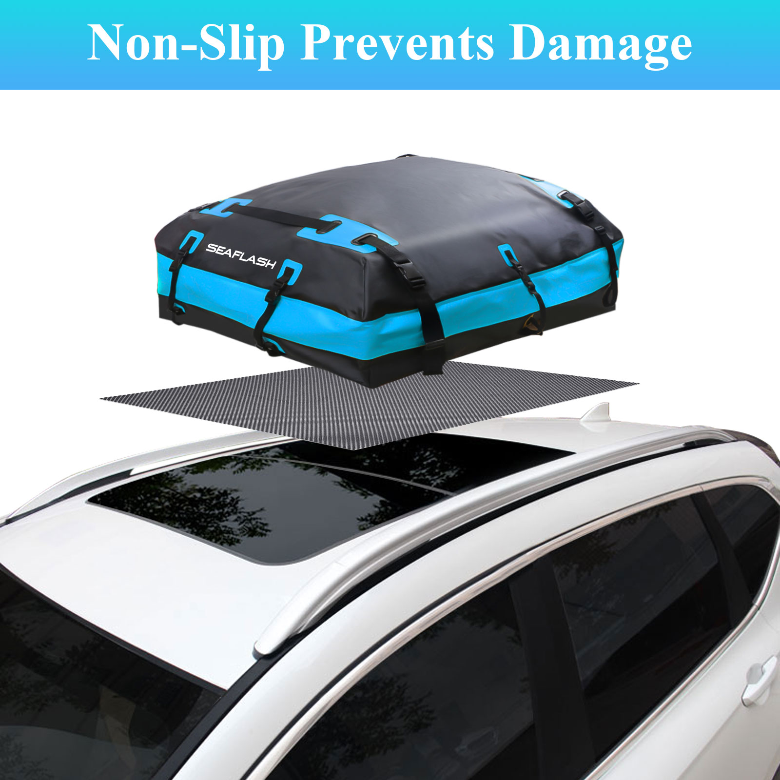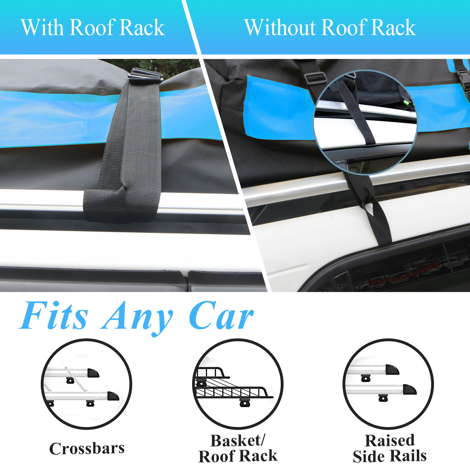 5. 모든 자동차에 적합: 카 탑 캐리어 백은 루프 랙 또는 사이드 레일의 유무에 관계없이 사용할 수 있습니다. 루프탑 카고 박스에는 4 도어 후크와 미끄럼 방지 패드가 장착되어 있어 차량 카고 캐리어 백을 다양한 차량에 사용할 수 있습니다. 모든 자동차, MPV 또는 SUV 포함.