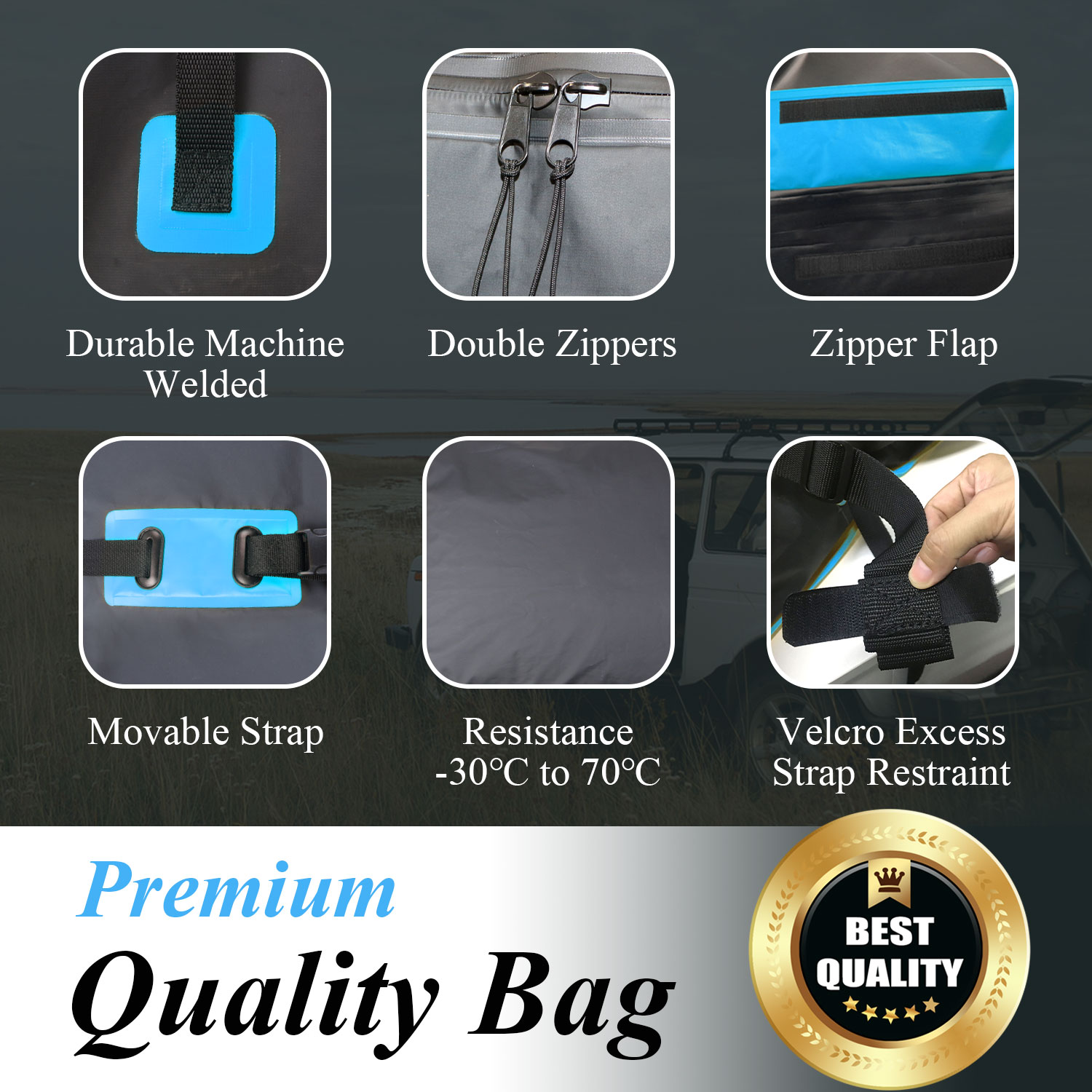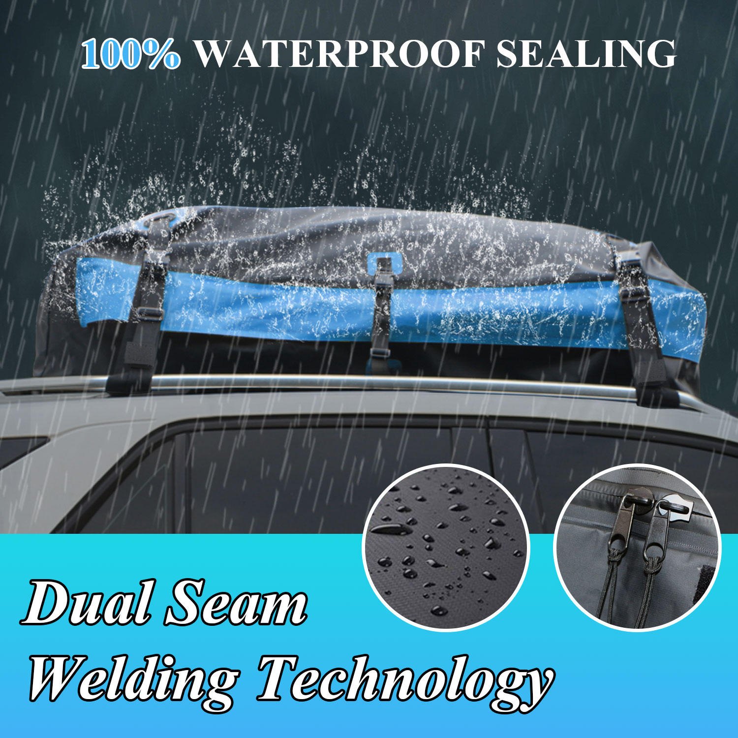 1.100% 방수-: 차량용 카고 캐리어 백은 고밀도 복합 적층 방수 PVC 패브릭으로 만들어졌으며 이중 레인 커튼 디자인, 방수 이중층 코팅, 넓어진 방수 지퍼 커버 및 확장된 벨크로 스트랩으로 이러한 모든 디자인은 완벽하게 다중 보호 기능을 제공합니다. 극한의 날씨에도 100% 방수 및 방수 기능을 제공합니다.