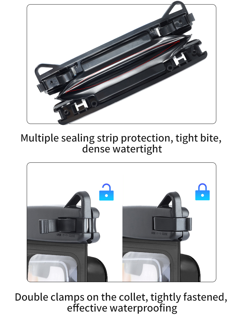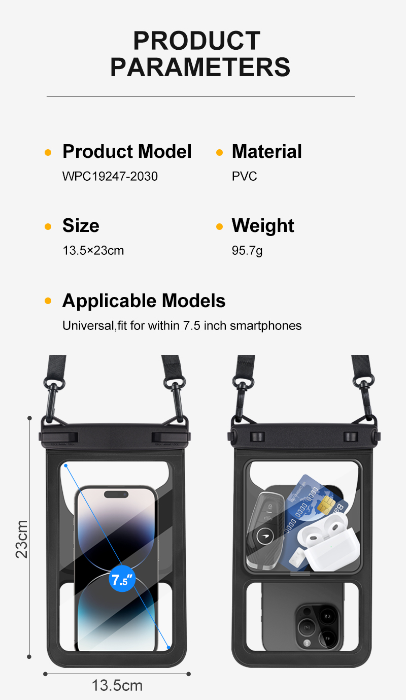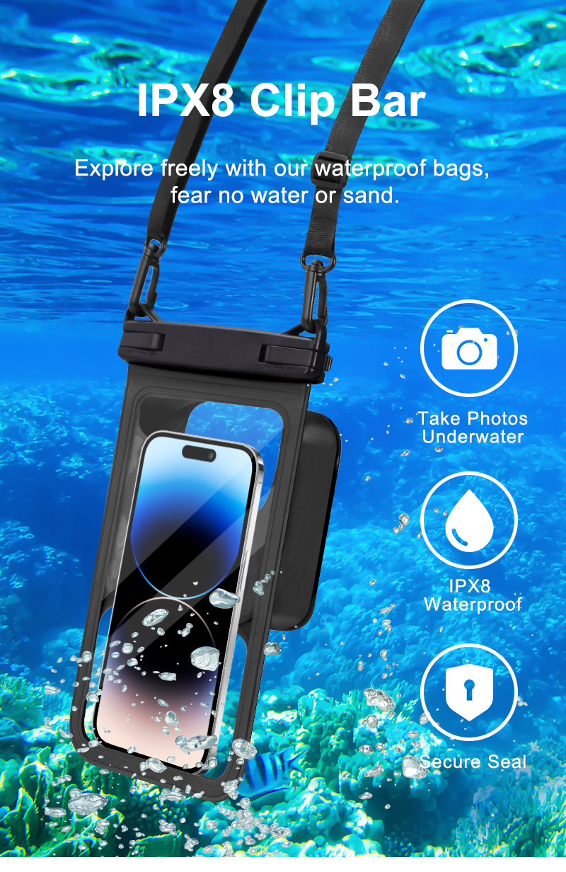 | 기능 | 수영용 방수 가방, 휴대폰용 비치 가방, 낚시용 방수 가방, 먼지, 먼지 방지, 휴대폰용 방수 파우치, 워터파크 활동용 방수 가방 |