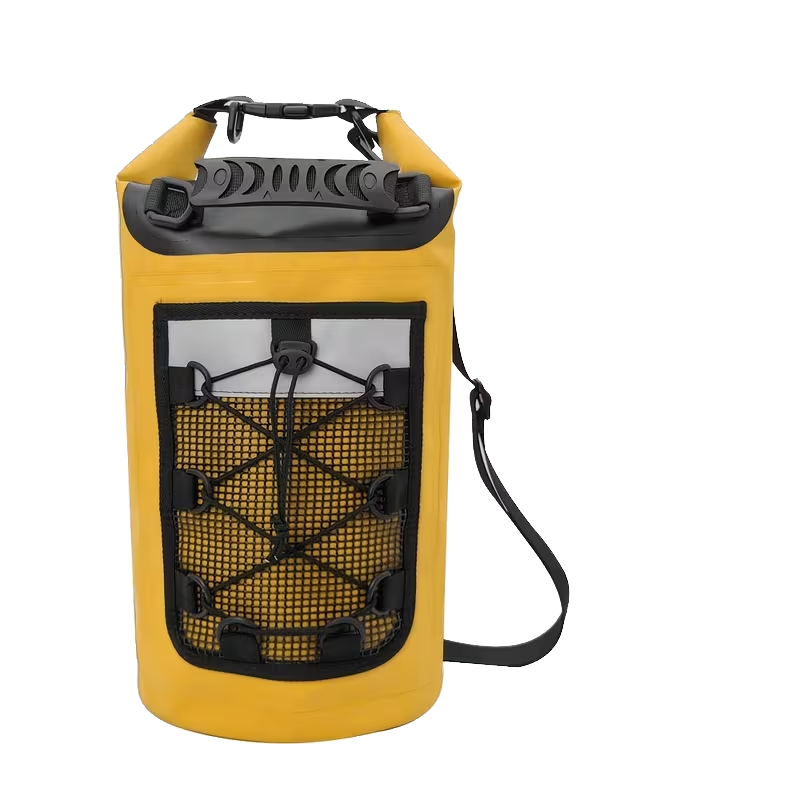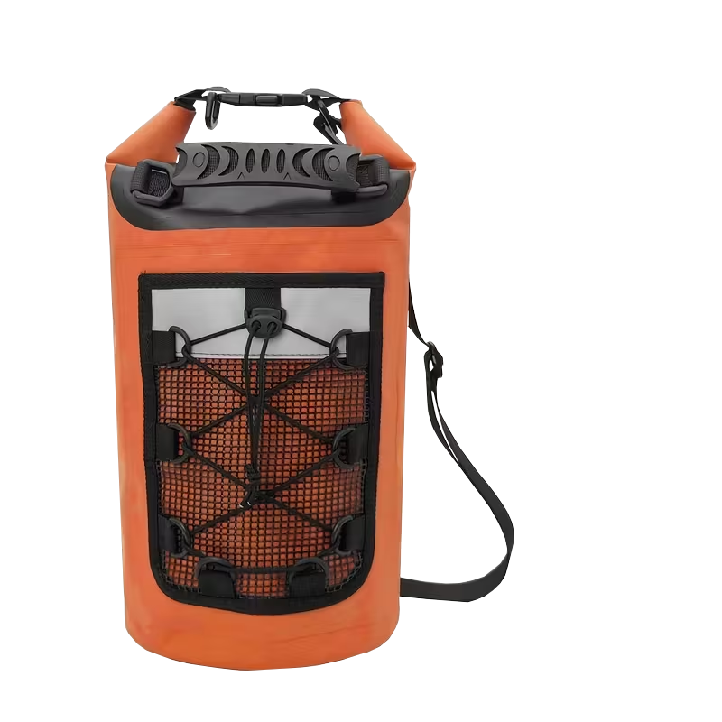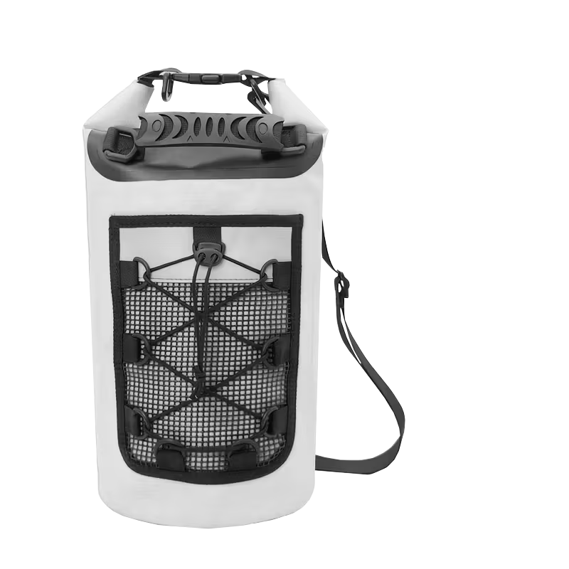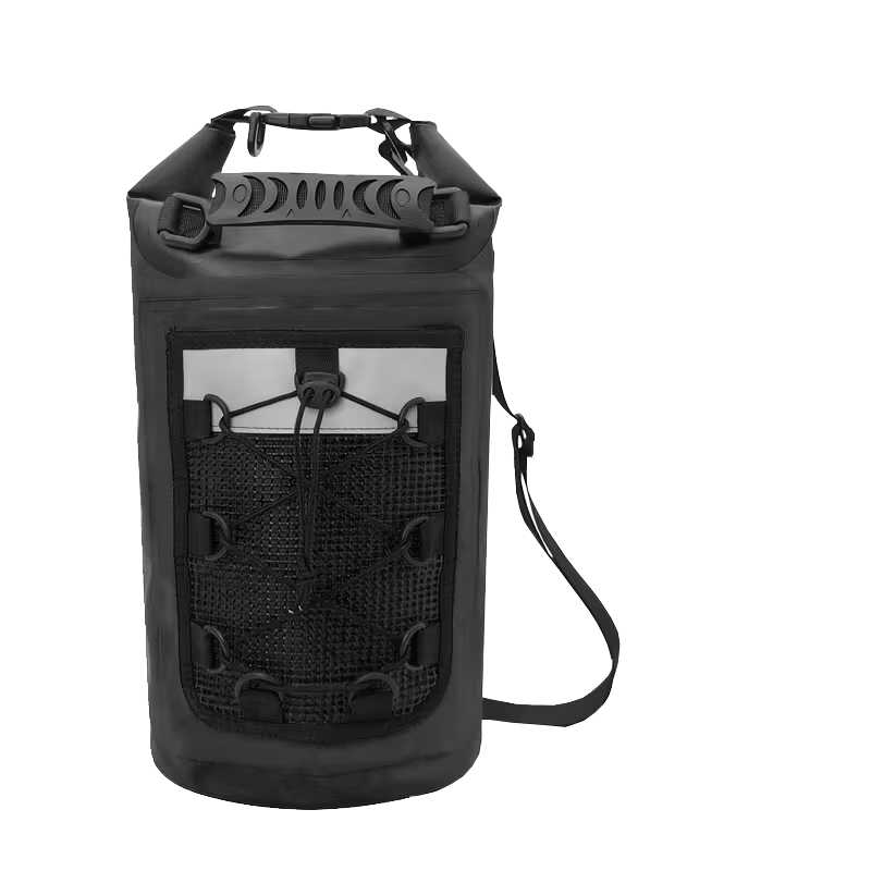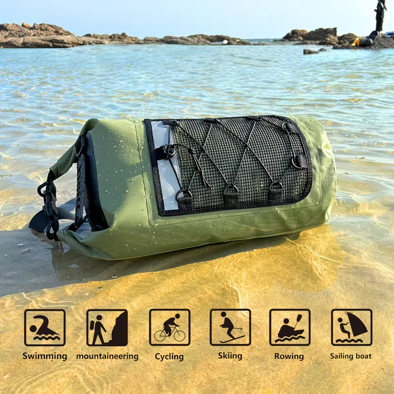 Hold utstyret ditt tørt og sikkert under alle forhold med vår allsidige tørrveske-ryggsekk. Denne maritime tørrvesken er laget av kraftig 500D PVC og netting, og er bygget for å motstå rifter, punkteringer og elementene. Med en maritim termisk sveiset forsegling og en enkel 3-trinns rullelukking garanterer den 100 % vanntett beskyttelse. De polstrede, justerbare stroppene og flere bærealternativer (ryggsekk, skulderveske eller håndbæring) gjør den til din perfekte følgesvenn for fotturer, camping, kajakkpadling, fisking, reiser og ski.