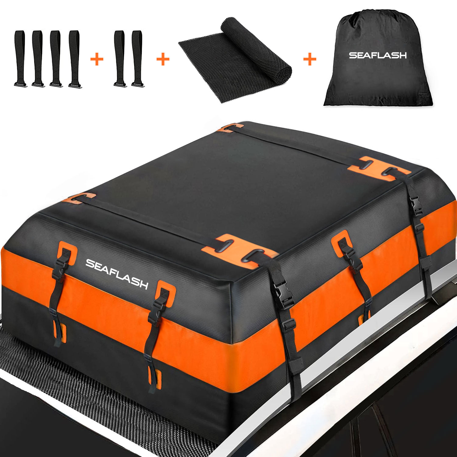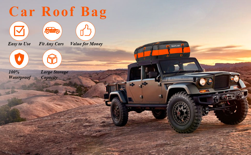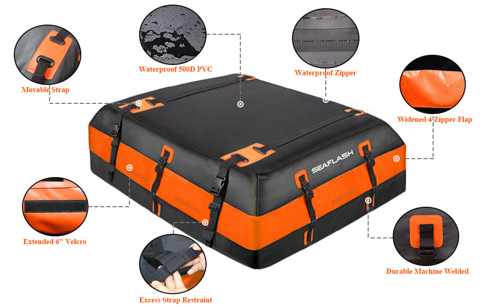 3. Oppgradert: Oppgradert lastebærer, ingen pinholes og 100% vanntett. Aldri bekymre deg for å rive eller lekke! Vår biltoppholder har også en skjult SBS vanntett glidelås med ekstra lang borrelås, og bred 6 tommer beskyttet med en dobbel klaff, den kan hindre regnet fra å sildre inn gjennom åpningen, og gir allsidig beskyttelse, selv i regnskyll.
