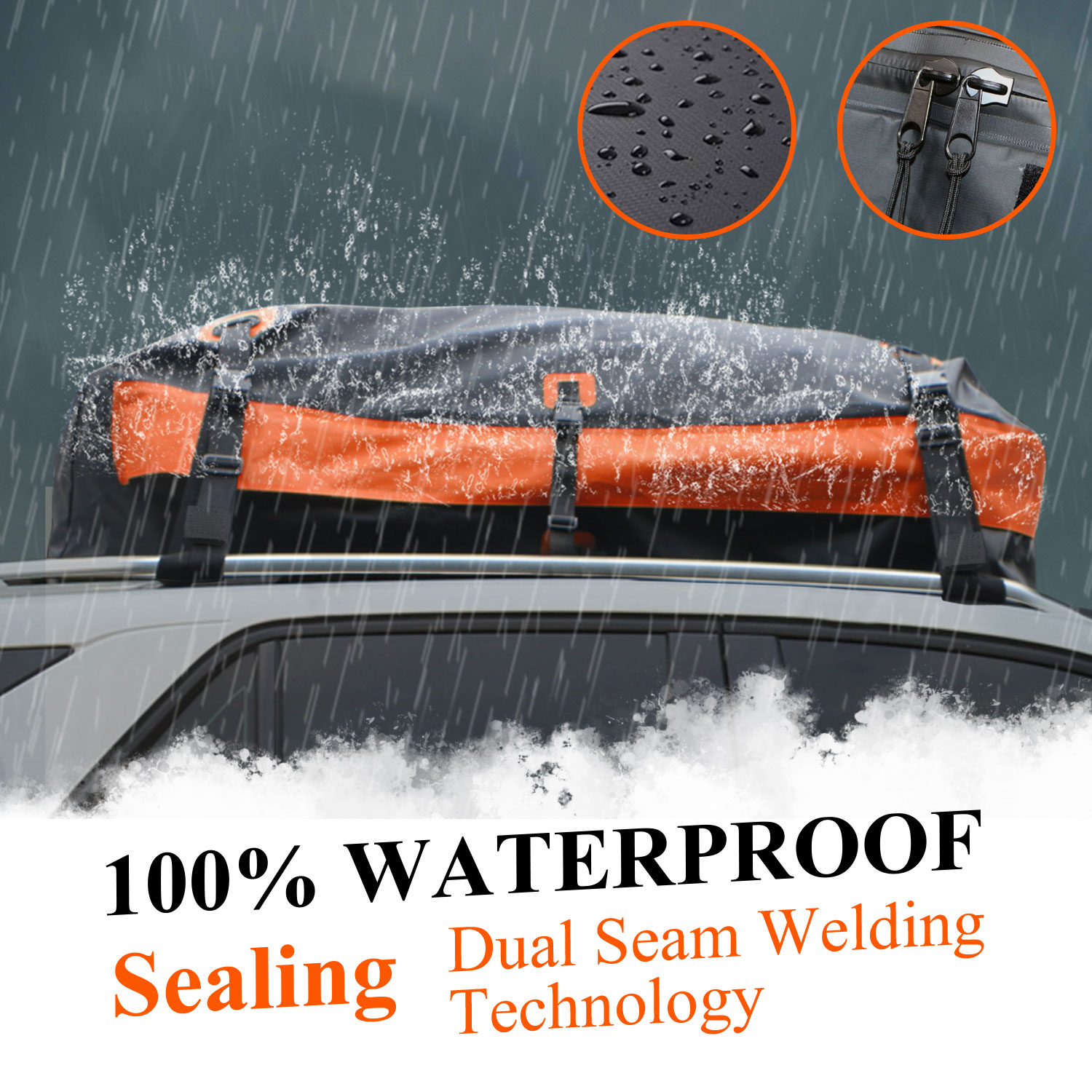 2,100 % vanntett: Mange biltakvesker hevder å være vanntette, men er det ikke. CARGO ROOF lastbag på taket er laget av rivebestandig 900D med høy tetthet, 100% rent PVC vanntett stoff, motstandsdyktig mot høye og lave temperaturer. Kan effektivt beskytte bagasjen din mot regn, grus, snø, vind og sol på veien.
