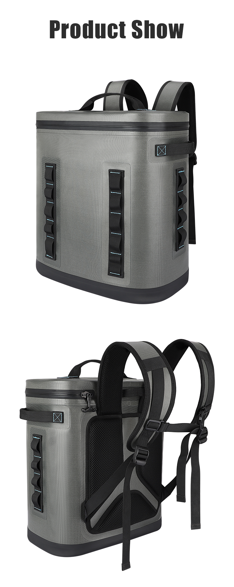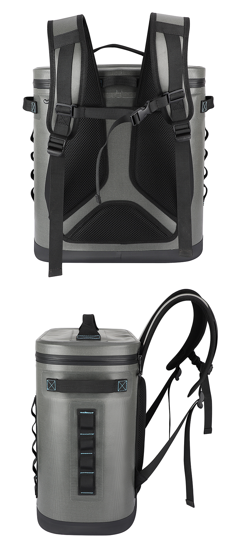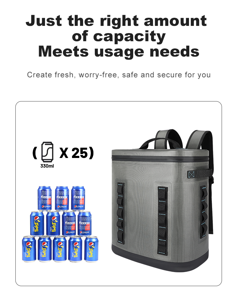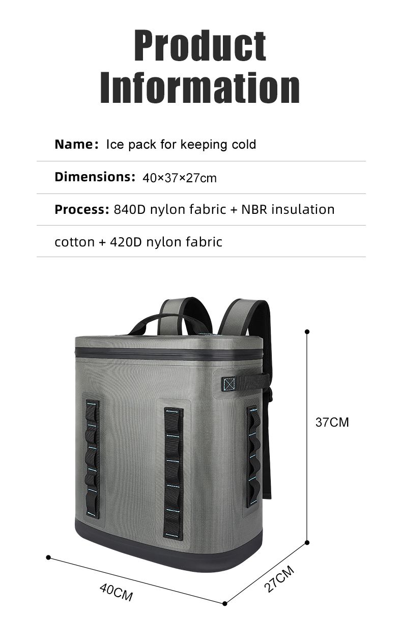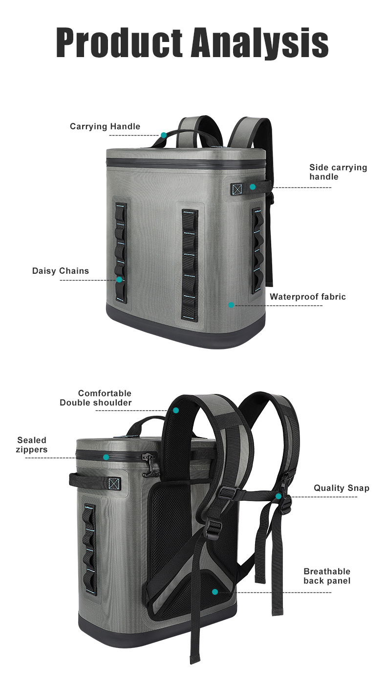 1.Insulated backpack cooler bags are made of double-sided waterproof material and leak-proof zipper to effectively minimizes loss of cool air. 100% waterproof material and perfect sealing feature ensure soft sided cooler excellent performance.