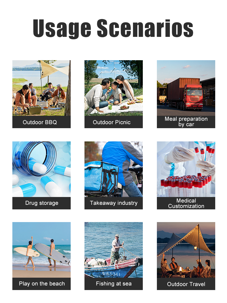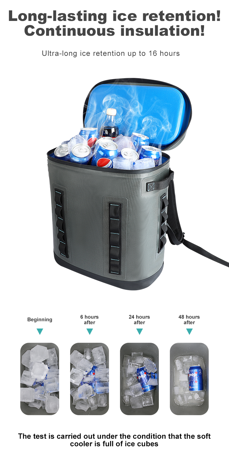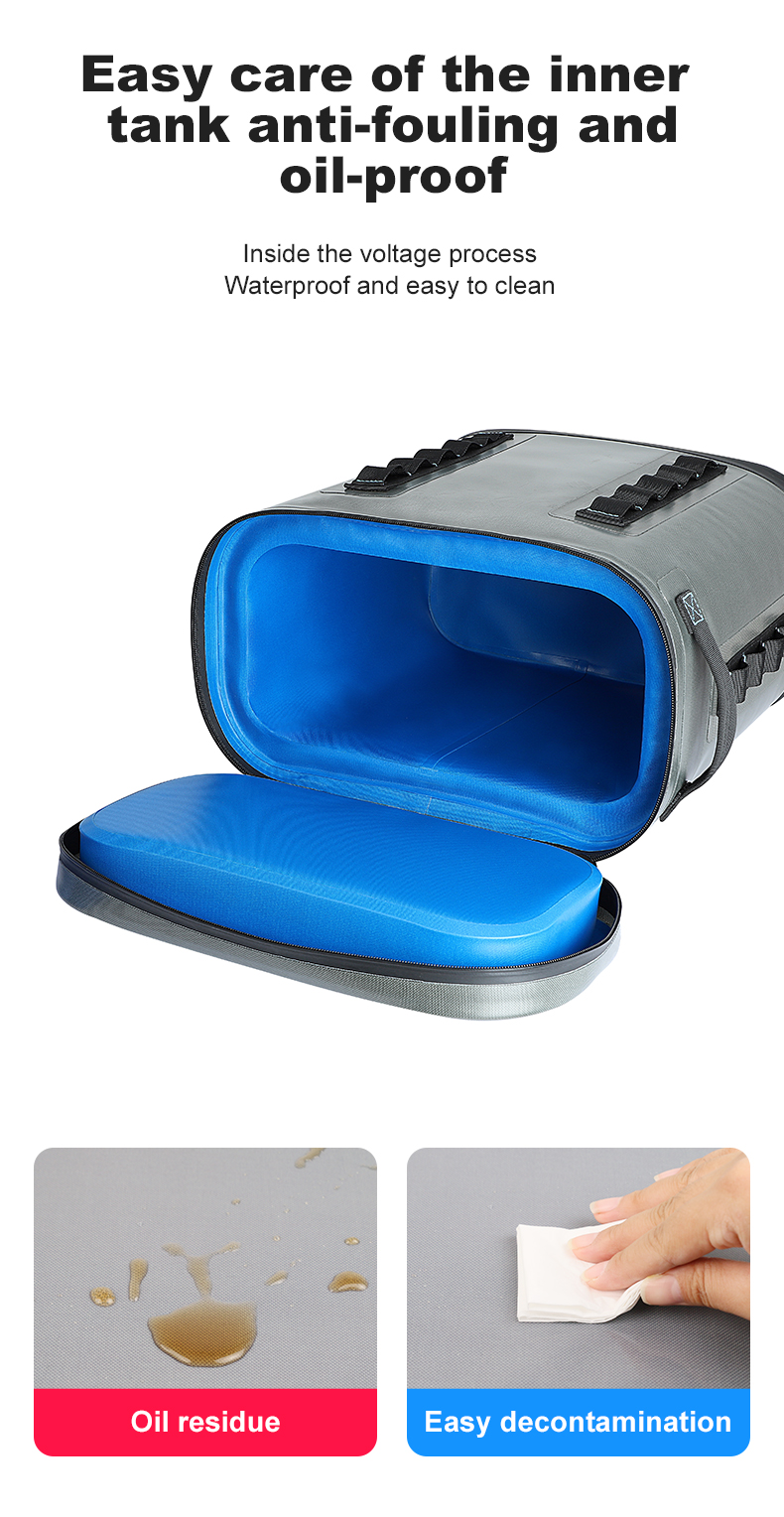 3.Super Long Cooling Performance: More Than 48 Hours Extra Long Cooling Insulation Time Under a 107 Degree Indoor Environment. Lining is Composed of 28mm Thick High-density Insulation Foam and TPU Waterproof Film. Outer Layer is Composed of 840D TPU Coated Cloth, More Durable.