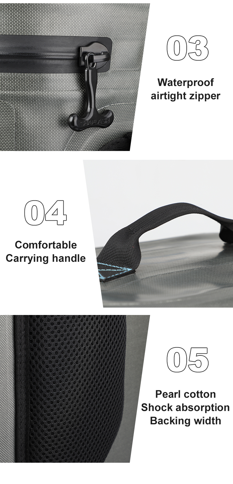 2. With a detachable shoulder strap, reinforced top strap and side handle straps, you can carry it in hand or on your back or take with a companion.