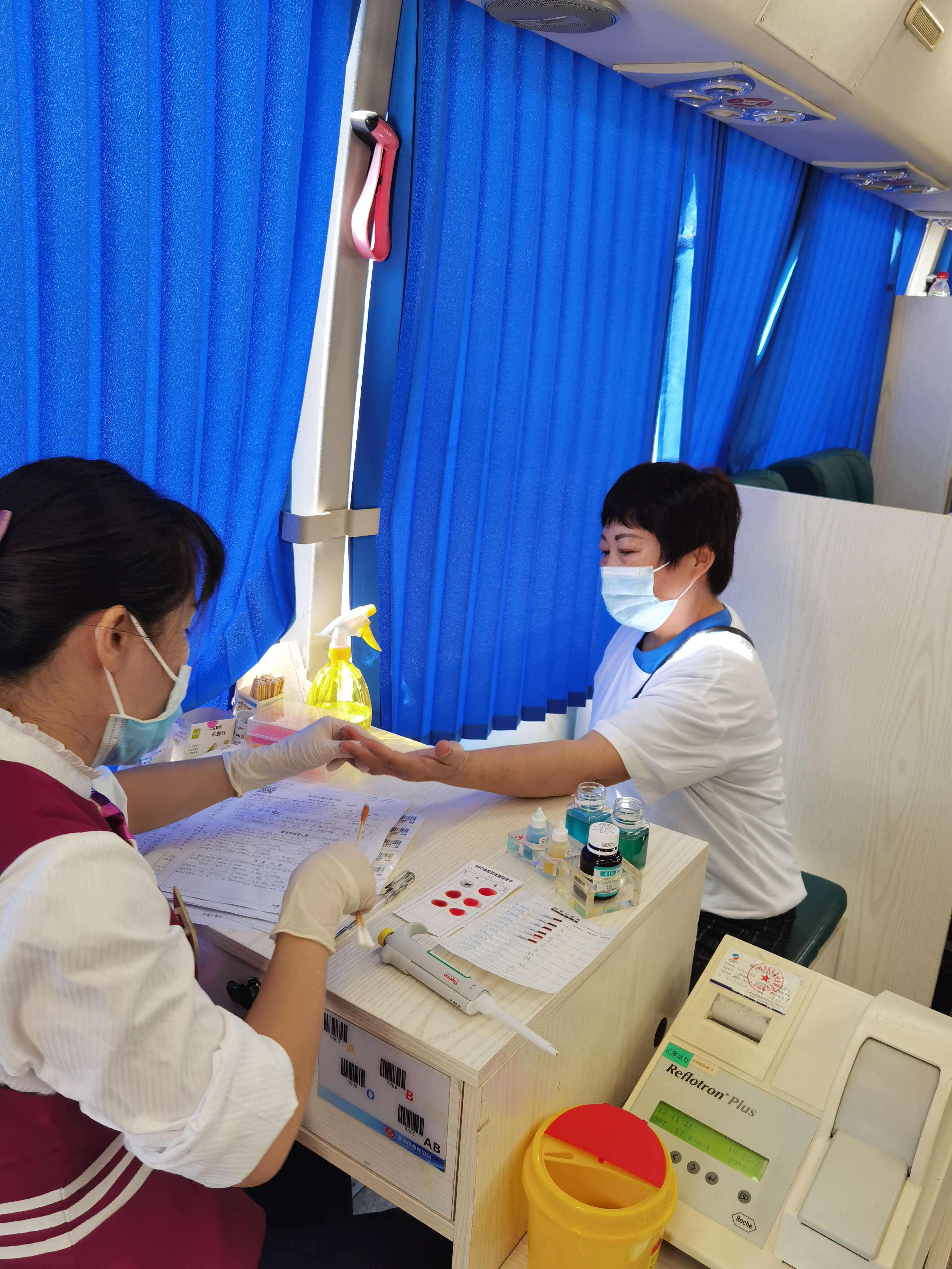 At 9 a. m., the blood donation staff of the company took the blood donation bus to the collection center. After all the preparations are completed, the blood donors, under the guidance of the staff of the city center blood station,