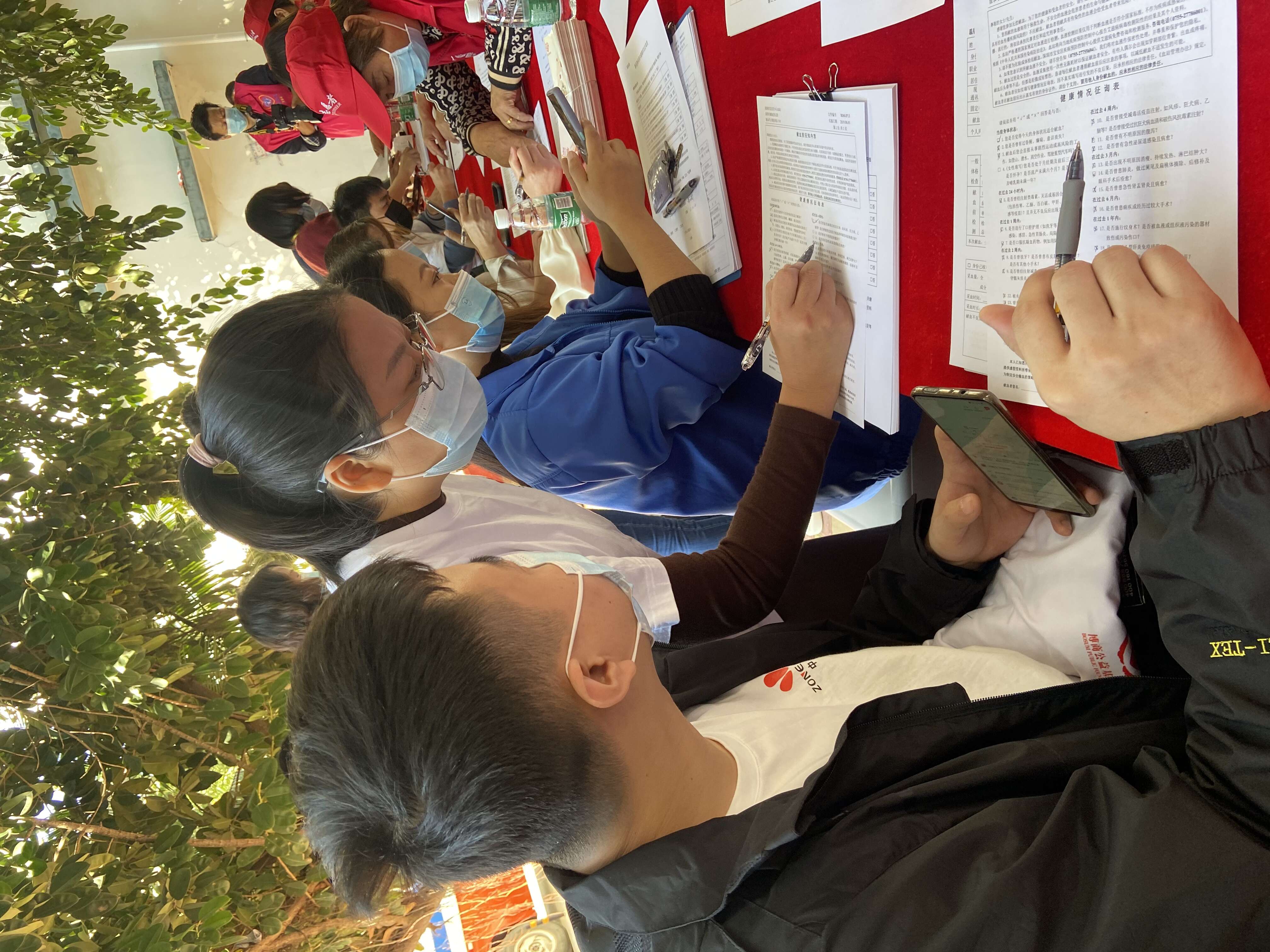 carefully fill out the blood donation registration form, measure blood pressure, draw blood test, and donate blood to the city center blood station without compensation after the blood test is qu