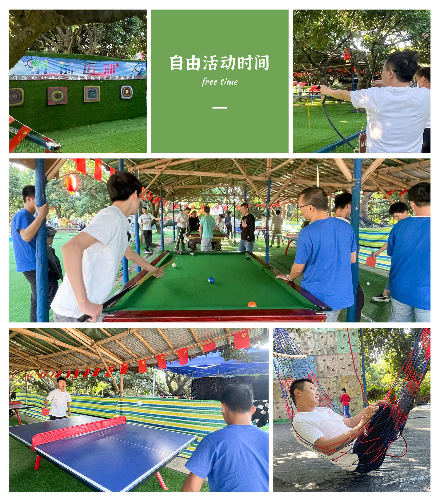 After the group building activities, everyone group play park entertainment projects, such as table tennis, billiards, badminton, archery, some play table games, poker, singing, like quiet in this temperature suitable sunshine,