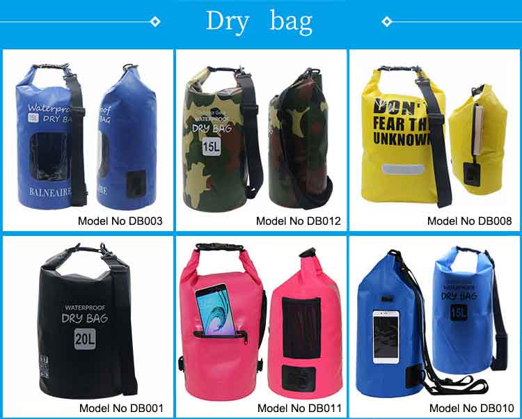 | Product name: | Custom Fashion 2L 5L 10L 15L 20L 25L 30L Boating Hiking Kayak PVC Waterproof Dry Bag |