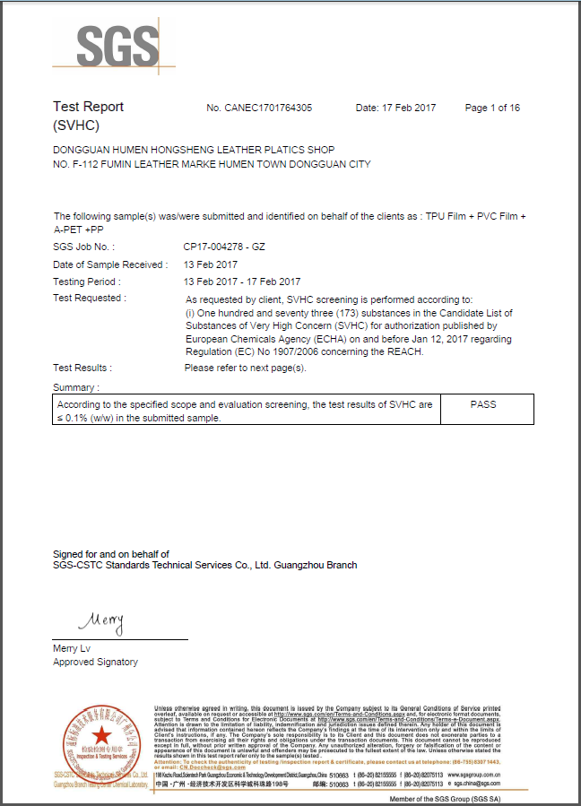 SGS REACH ROHS certificated
