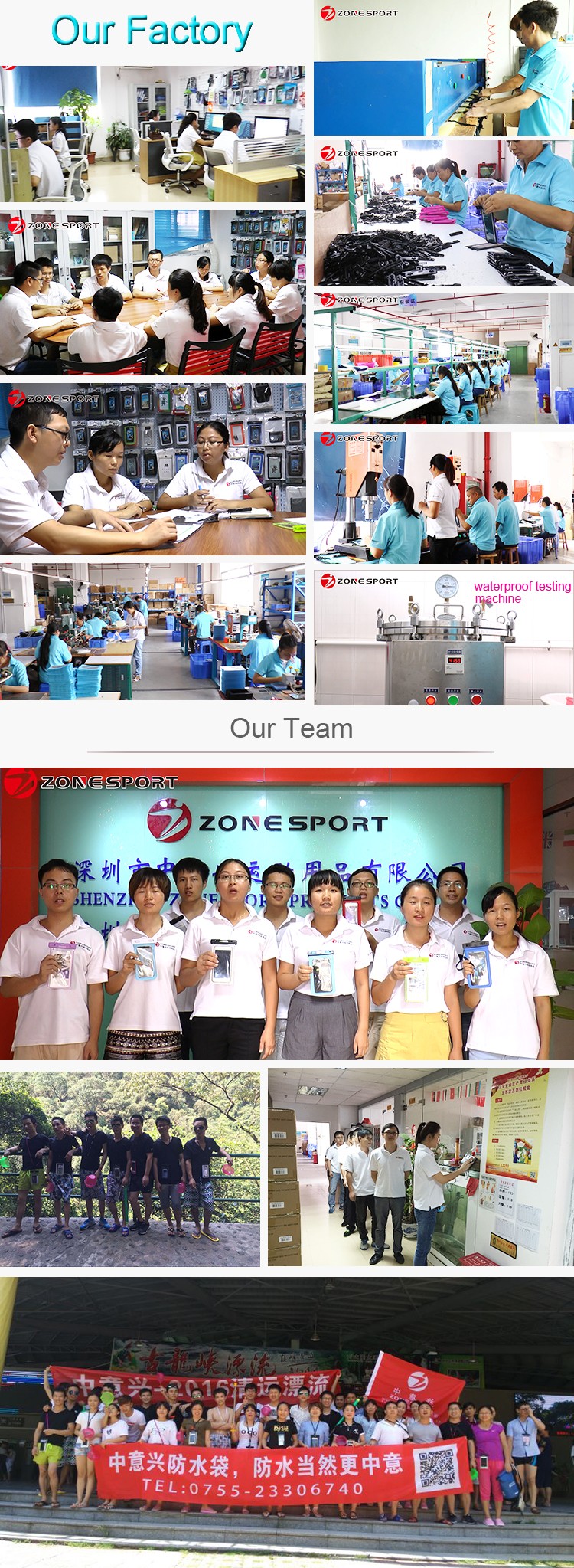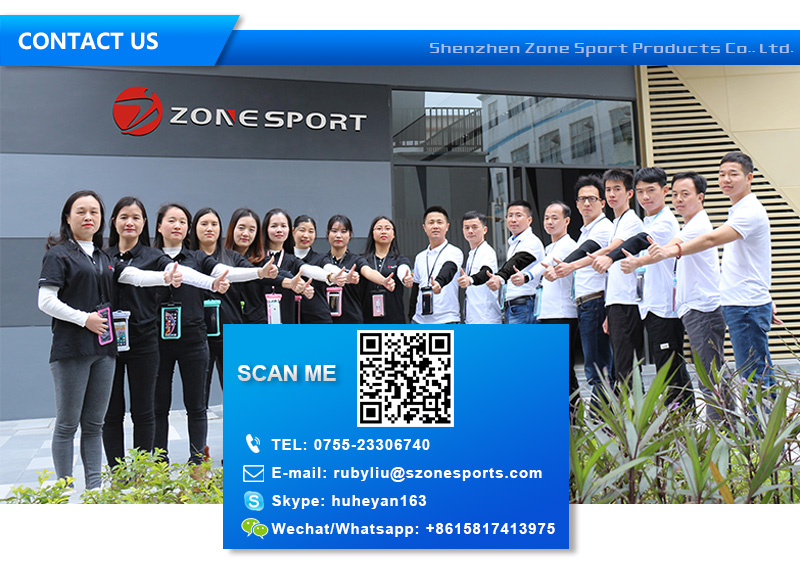 Established in 2008, Shenzhen Zone Sports Product Co., Ltd is a manufacturer and global marketer of outdoor gear for water sports (swimming/ water park entertainment/ kayaking/ fishing/ skating/ snorkeling/ boating), running/ biking/ camping/ hiking/ hunting/ shooting and other sports, etc. Our products range from waterproof case, waterproof bag, sport armband, running belt, dry bag, waist pack, waist bag, ice wine bag, wine bubble bag and etc.. Located in Shenzhen China, ZoneSport's products and services can be found in more than 30 countries.