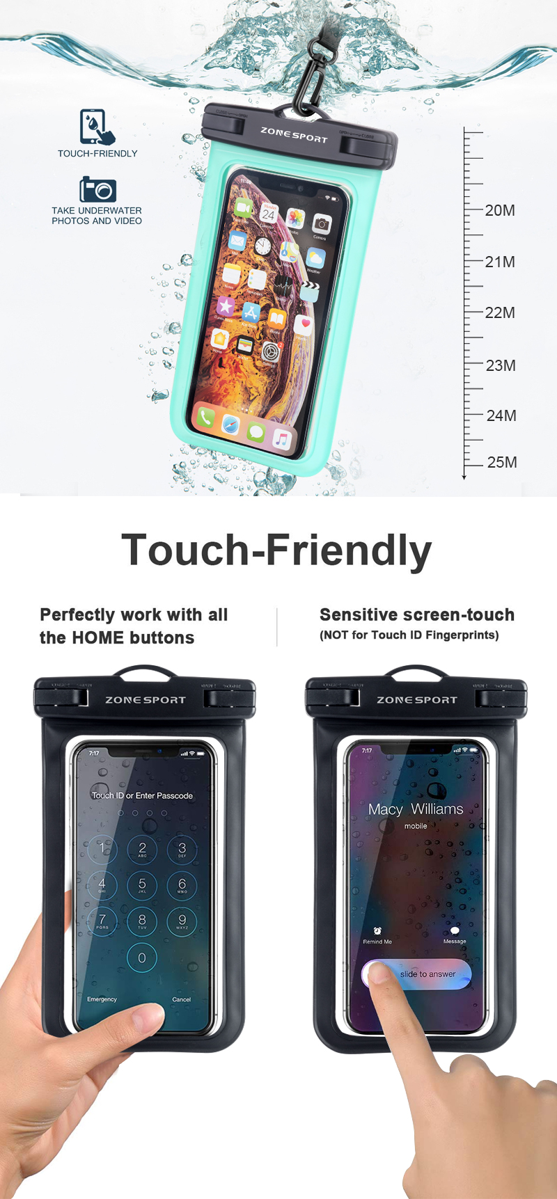 Shenzhen Zone Sport Products Co., Ltd is a popular company known for providing Waterproof Phone Pouch to the clients. Based on Wholesale Customized Waterproof Pouch Bag Underwater Cell Phone Pouch Bag Case Cover properties, we have selected technology to manufacture the product after conducting multiple tests and experiments.Our product is qualified for being used in the application field(s) of Waterproof Phone Pouch. With a comprehensive understanding of the company management system, our employees can better realize their duties, which contributes to higher-efficiency manufacturing and more professional services. Our goal is to be a leading company in the global market.