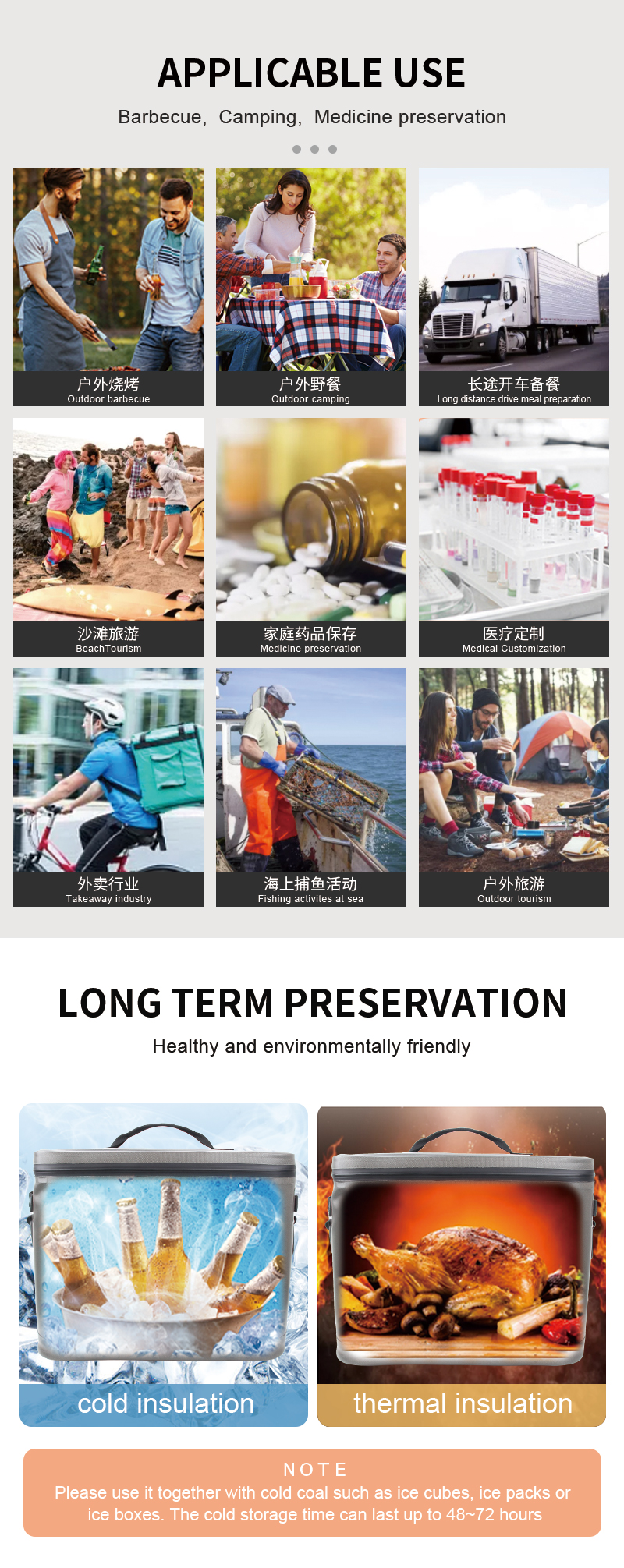 | Product name: | Large Capacity Soft Cooler Bag | Usage: | Fishing Camping Picnic Wine Hunting |