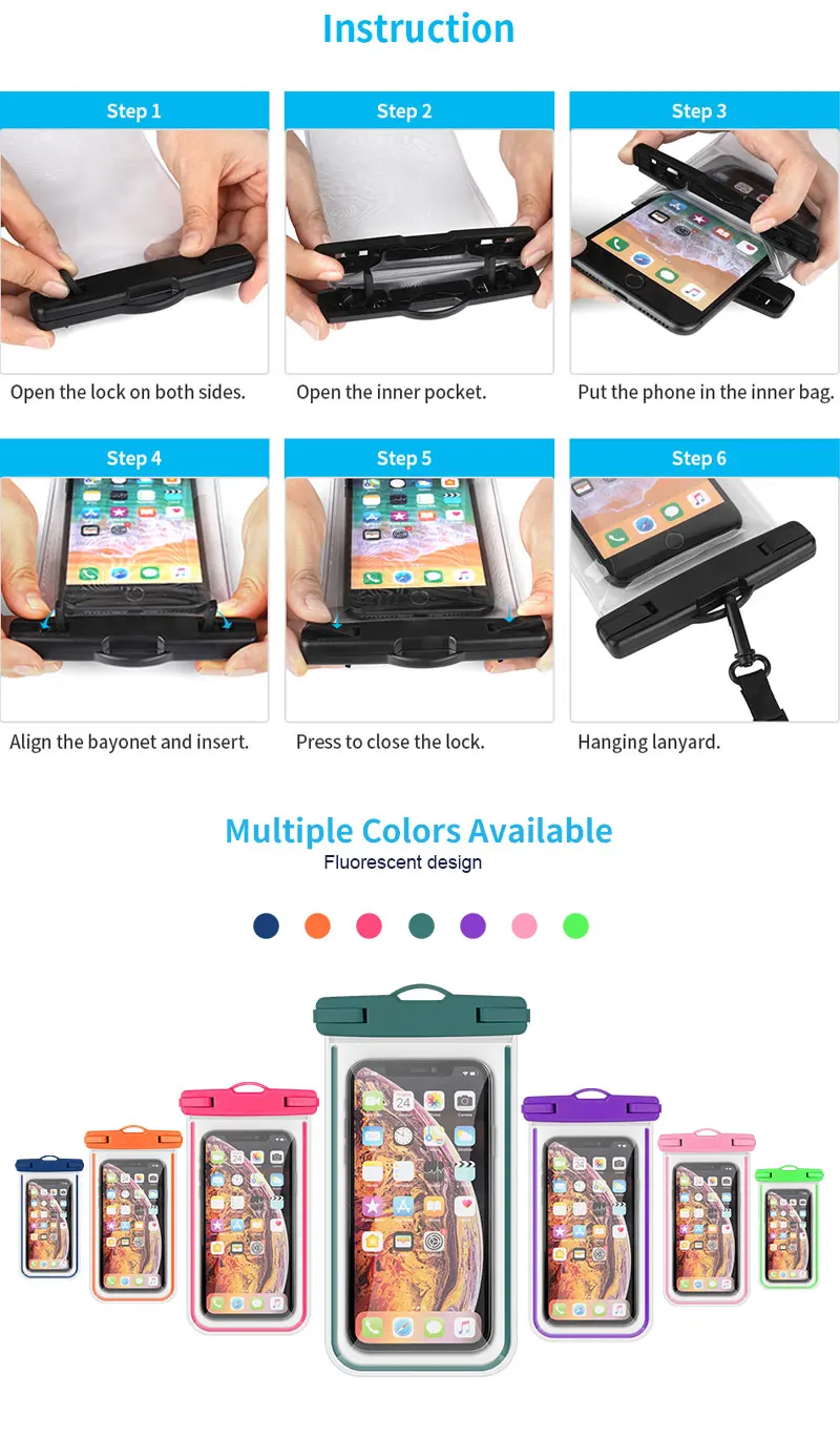 Factory Wholesale Pvc Fluorescent Waterproof Mobile Phone Pouch Bag For Swimming