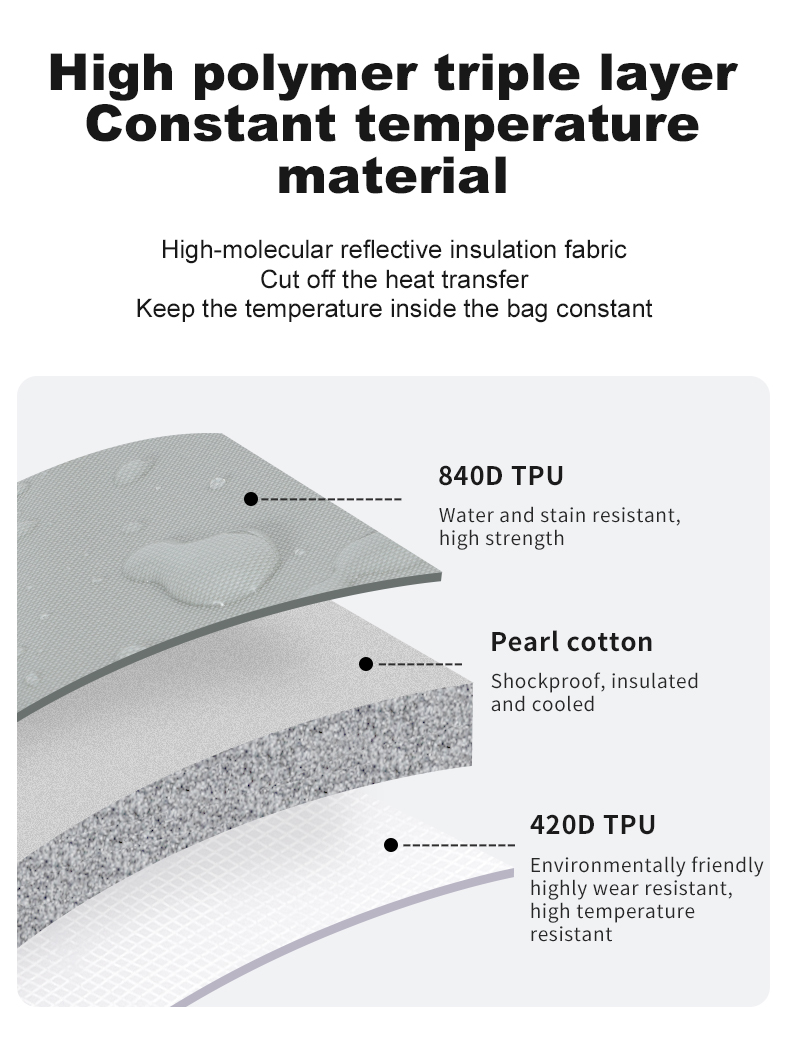 | Material | eco-friendly 840DTPU+Thermal cotton (EU and Japanese standard) |