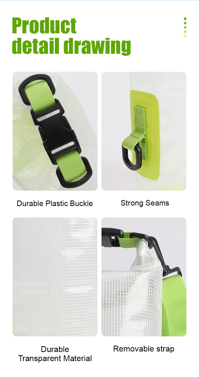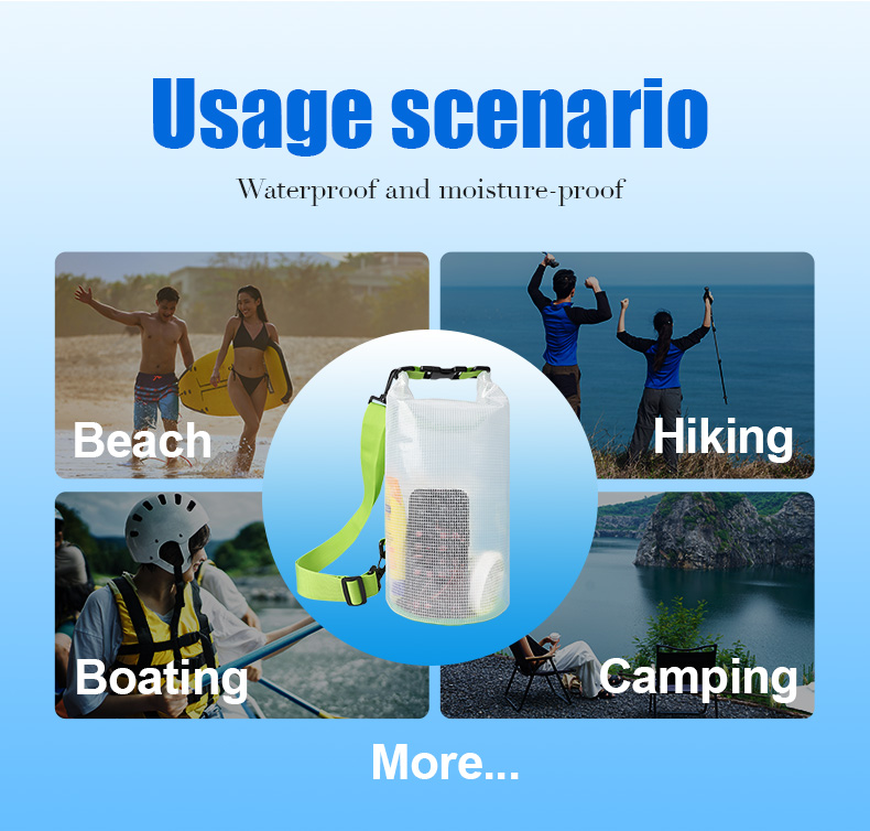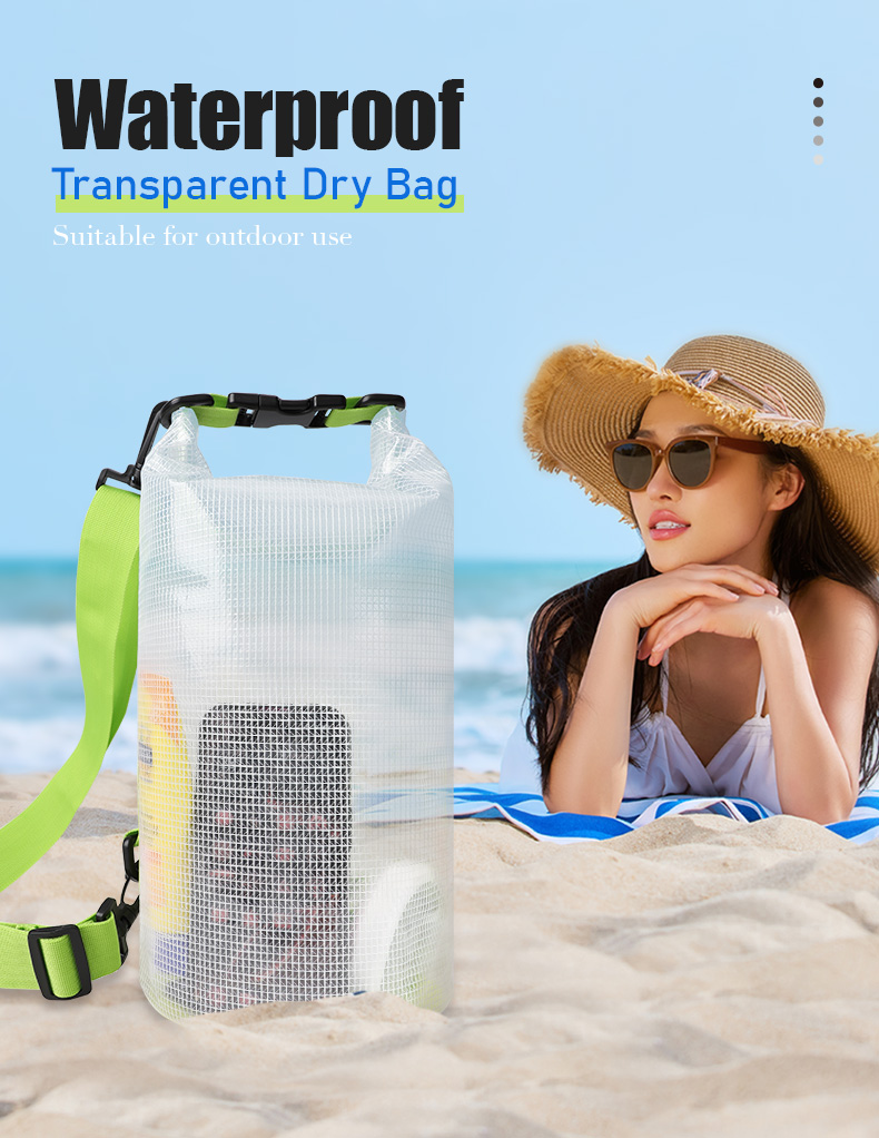 Zonesport's Floating Dry Bags is made of high-quality Waterproof material and HF welding process which make it waterproof .Transparent 500D PVC coated mesh makes the items in our waterproof dry bag are seen,it clearly knows if anything you forgetting when you are going swiming,boating.hiking,camping,cruising,trekking,beach,pool and other outdoor sports.