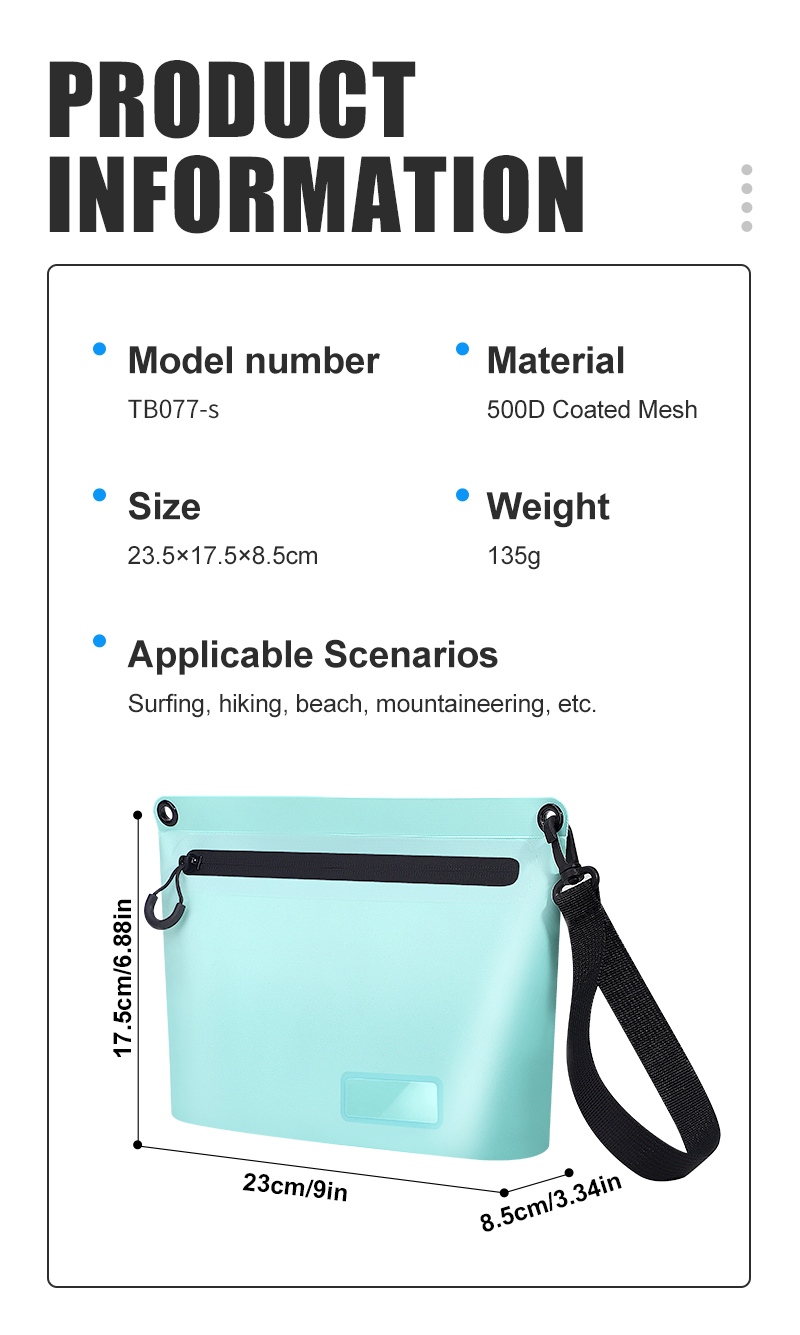 In order to meet the needs of outdoor sports enthusiasts, ZoneSport's small handbag is made of waterproof material and RF Welding process to achieve waterproof requirements, the waterproof bag is only 3L in capacity, but it can store cell phones, sunglasses, waterproof creams, lipsticks, rechargeable treasures, change, passports and other essentials, which is the best choice for us to participate in water activities,such as swimming,boating,beach,pool,camping,hiking,etc.