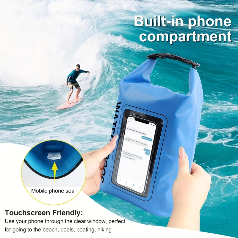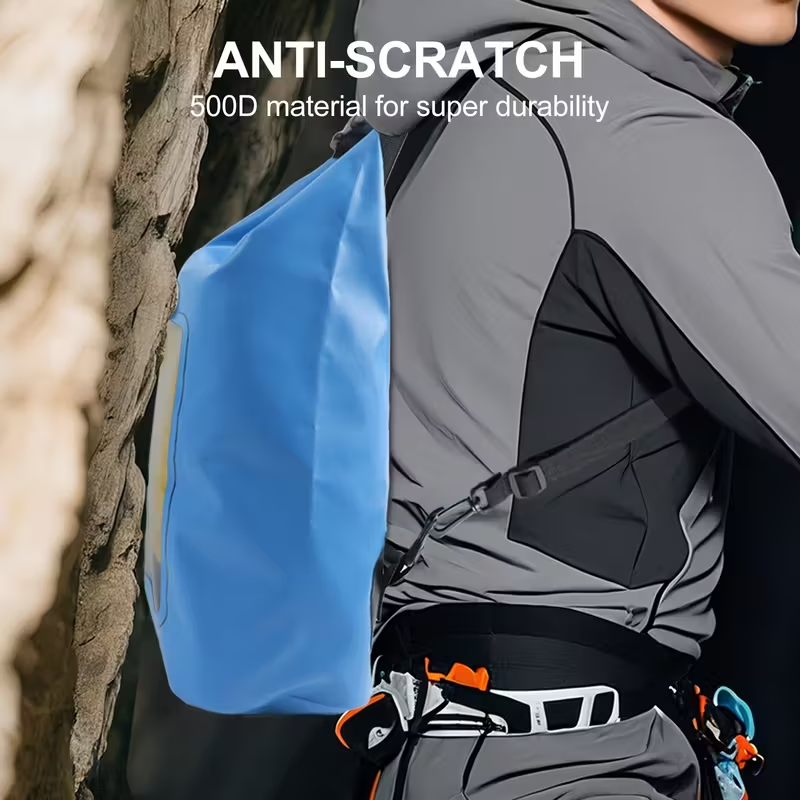 Tired of wet phones, soggy wallets, or ruined gear during outdoor activities? Our 5L Waterproof Dry Bag is the solution you need. Built with heavy-duty 500D anti-scratch material and IPX8-level water resistance, this bag keeps your essentials safe even when submerged 3.3ft (1m) underwater for 30 minutes – and it floats (no more lost items in lakes or oceans!).