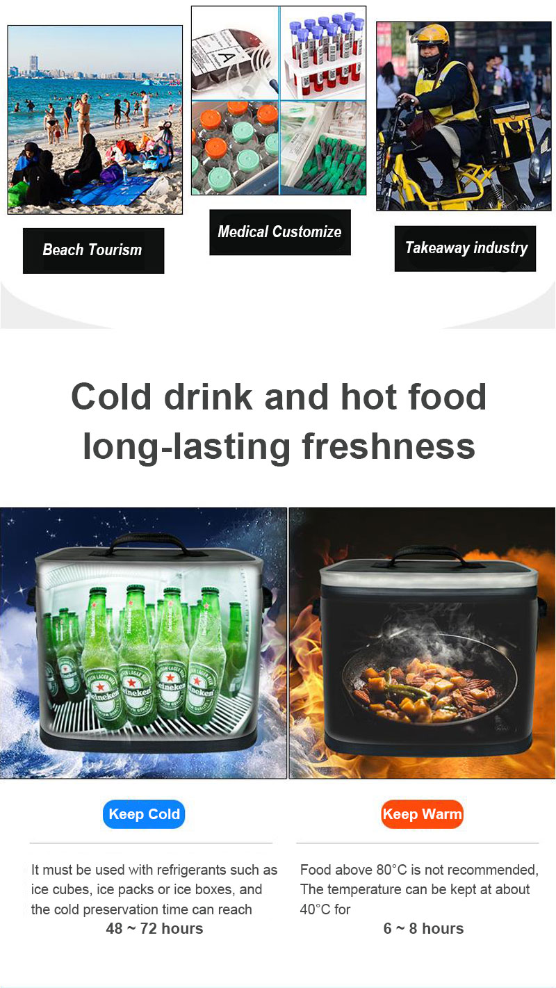 a bolsa térmica pode realmente manter as temperaturas, não importa o frio ou o calor.É bem feito para manter o frio por mais de 48 horas, quase 2 dias,