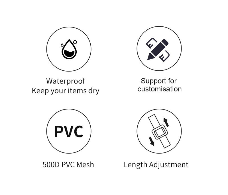 | imibala: | Mnyama,Mhlophe,Pinki,Bhulowu,Luhlaza,ect | Izinto: | 500D PVC Mesh Coated |