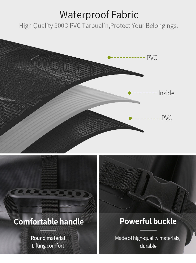 Zone Sport kaThixo Custom Dry Bag ubhaka yenziwe 10 amaxesha ixesha elide 500D PVC izinto Coated ngaphezu others.It hayi amanzi kuphela kodwa cut-resistant. Ukuze ungabi saxhalaba malunga nobhaka ongenamanzi uya kwaphuka kwaye uphulukane lula xa usenza imidlalo yangaphandle.Iinkampu zoobhaka ezomileyo zeZone Sport ziliqabane elikhulu kwimisebenzi yakho yangaphandle.
