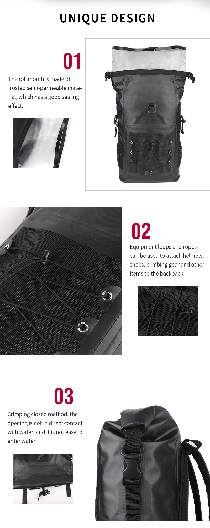 | Velisa igama | Ukukhwela isikhephe ngoBhaka ongangenwa ngamanzi, ibhegi yeCamping Backpack, uBhaka wesiNtu ongangenwa ngamanzi |